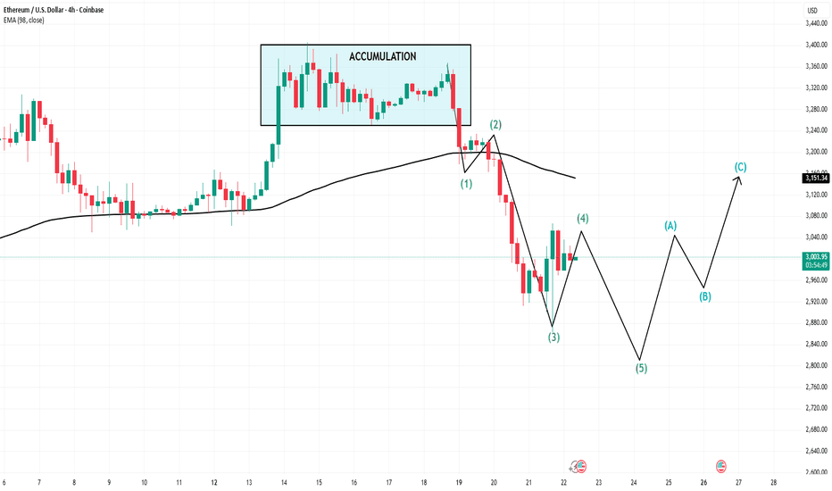 Wave (C): a stronger recovery move, potentially targeting the EMA 98 zone near ~3,150
