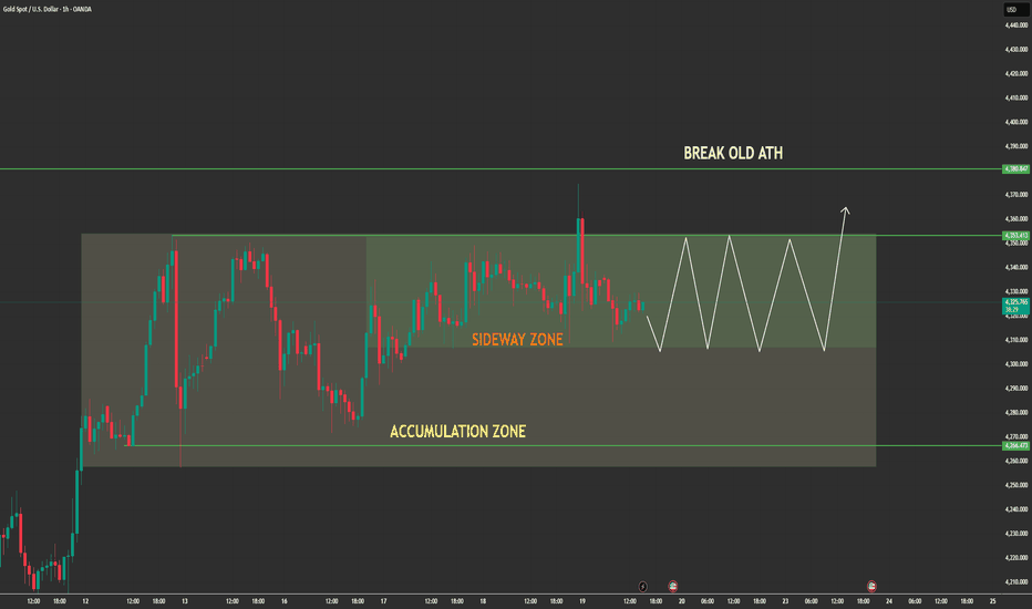 Gold is no longer trending impulsively. Price has transitioned into a clear accumulation → sideways expansion phase right below the old ATH.