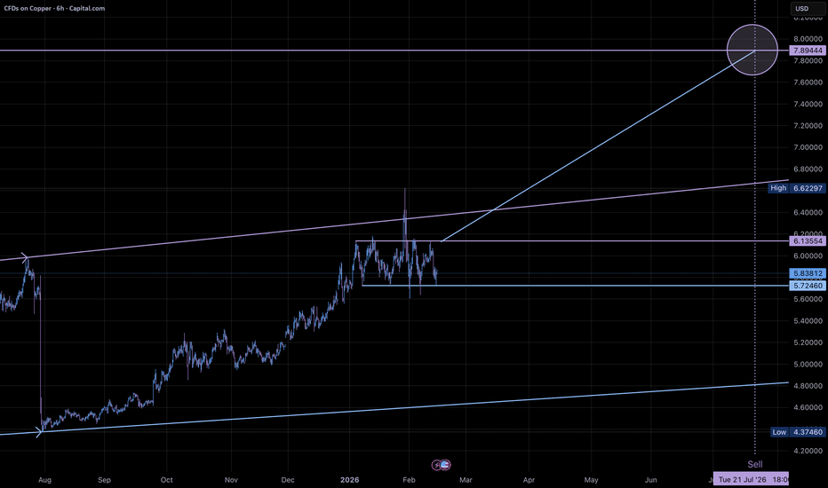 Copper to ~$7.90 (+35%)copper is in creating a bullish flag, with several touches on the support and resistance.