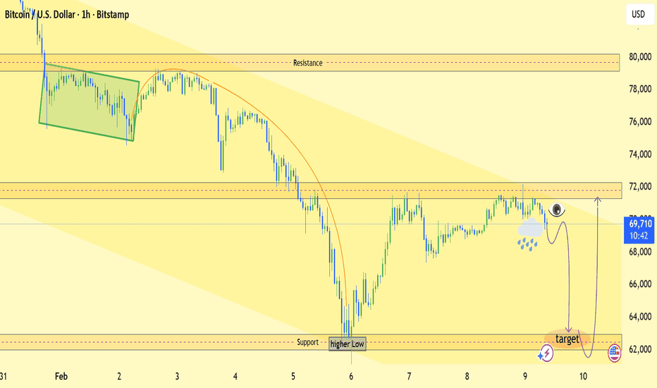 Move toward 62k support (target zone) 🎯