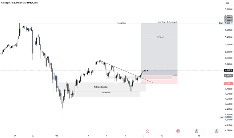Gold has shown a shift in market structure after reacting strongly from the H4 demand zone, where buyers stepped in and protected the lows. Price has since broken the short-term bearish structure and pushed higher, confirming bullish intent on the lower timeframe.