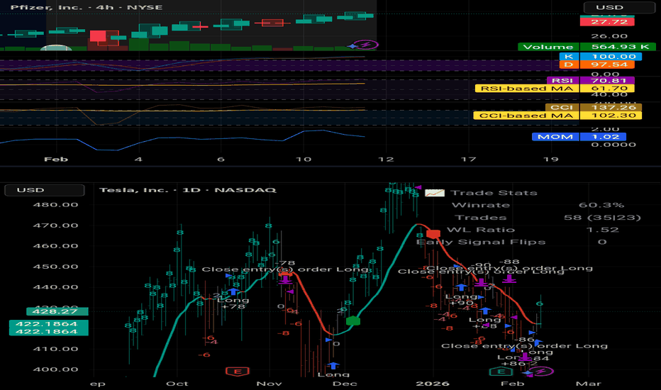 PFE & TSLAPhizer presents with a very strong uptrend that is in place. This
