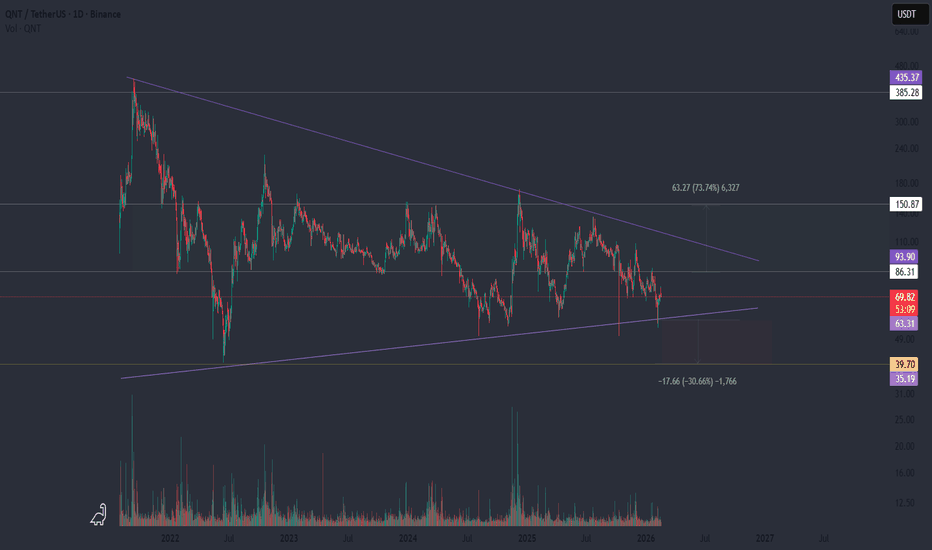 QNTUSDT Compression within the long-term rangePrice is compressing within a long-term converging range.