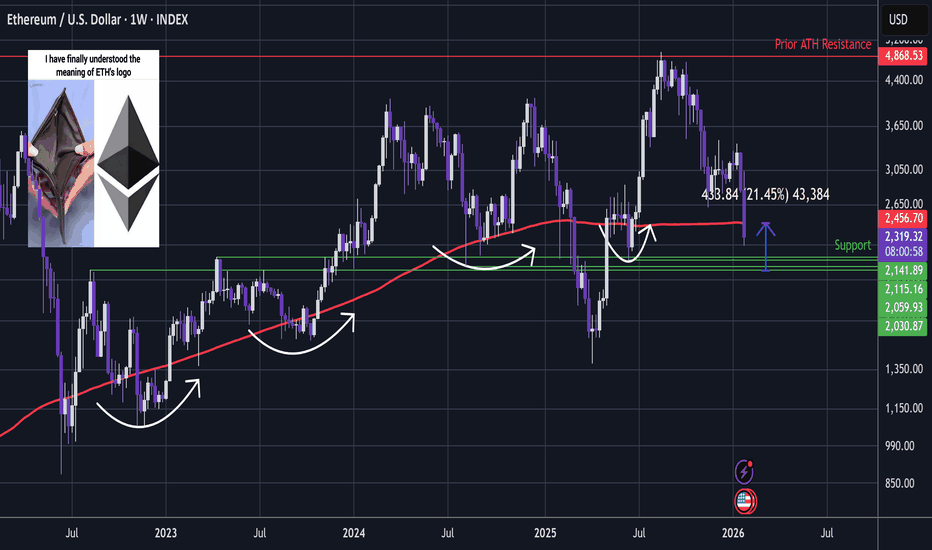 ETH has now crossed the red significant 200 week moving average.