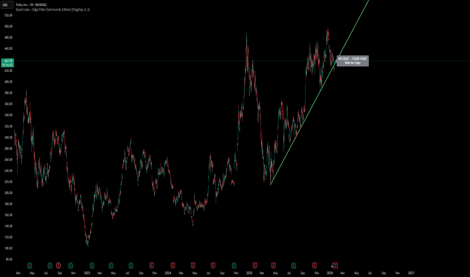 TSLA — Strong Trend, No Edge Yet | Stand Aside (Edge Filter)Tesla remains in a strong uptrend, but current price is mid-range with no asymmetric edge.