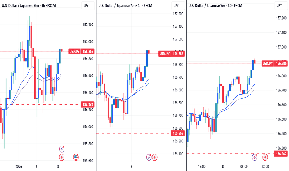 Buy USDJPY 08/01/2026The uptrend of USDJPY has been reconfirmed during this morning’s session, with alignment across all timeframes, after the market tested the 156.3 level in last night’s U.S. session. Accordingly, today’s strategy is to buy USDJPY in the 156.6–156.7 zone, with take-profit and stop-loss levels set at ±40 pips from the entry point.