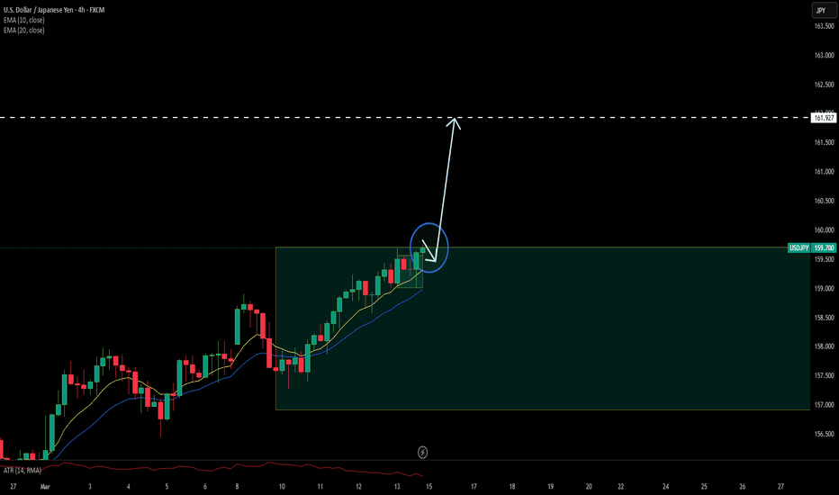 FX:USDJPY On the 1H chart, USD/JPY continues to trade within a well-defined ascending channel that has been intact since mid-February. Following a successful defense of the channel's lower boundary near 156.00. The pair has regained strong positive traction at the start of the new week.