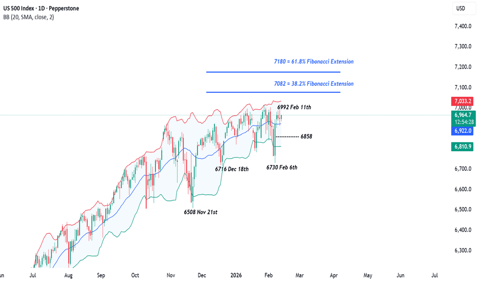 If a more extended decline were to unfold and prices close below the 6858 support level, downside pressure could be possible. The next support zone to monitor could then be 6716/30, which captures the December 18th and February 6th lows. A break beneath this area could raise the risk of further declines toward 6508, the November 21st low.