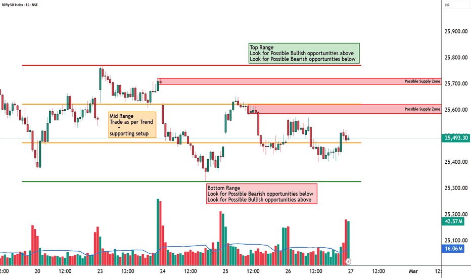 The projected CPR for the upcoming session appears lower and relatively wide, which typically indicates elevated volatility and the possibility of directional continuation if price sustains outside the CPR region. If price remains below the CPR zone during the early phase of the session, the bearish bias may remain dominant and continuation toward lower support zones may develop. However, if price manages to reclaim the CPR region, a temporary recovery toward nearby resistance clusters may occur. Overall, the CPR region is likely to act as the decision zone for the session.