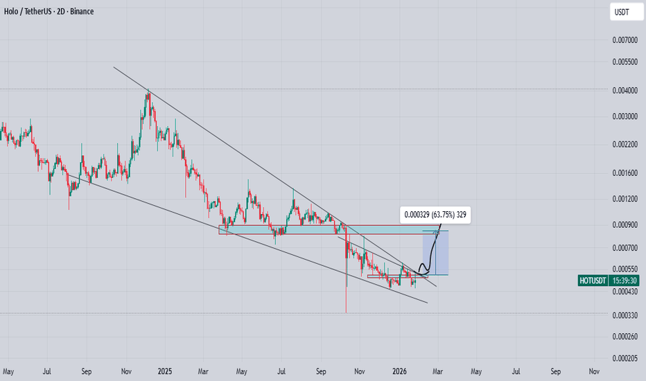 hot coin looking good after long bearish wavePrice is continuing to squeeze and compress, indicating building pressure. A strong upside breakout is possible from this zone.