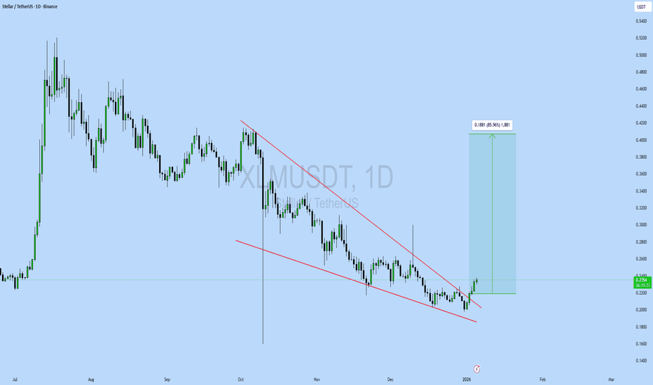 Technical Analysis: XLM is breaking out of a falling wedge pattern on the 1D chart, signaling a potential bullish reversal. Price has pushed above the descending resistance trendline after a prolonged downtrend, confirming breakout strength. The measured move from the wedge projects an upside target near 0.4230$, aligning with prior structure resistance and suggesting strong continuation potential if momentum holds.
