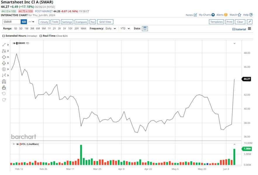 Shares of cloud-based work management platform Smartsheet (SMAR) rallied by 17% in a single session last Thursday after the company's results for the first quarter smashed expectations. Founded in 2005 and based out of Bellevue, Washington, SMAR stock is still down by about 7.4% on a YTD basis, and trades roughly 10% below its 52-week highs.