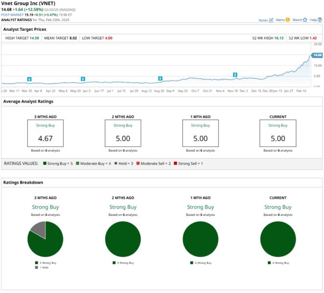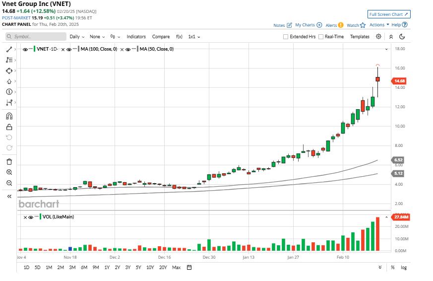 VNET VNET, a leading internet data center (IDC) services provider, has shown remarkable growth, with its shares skyrocketing by 731% over the past six months and a staggering 996% over the last year. This phenomenal growth reflects artificial intelligence (AI)-driven demand for its data centers.