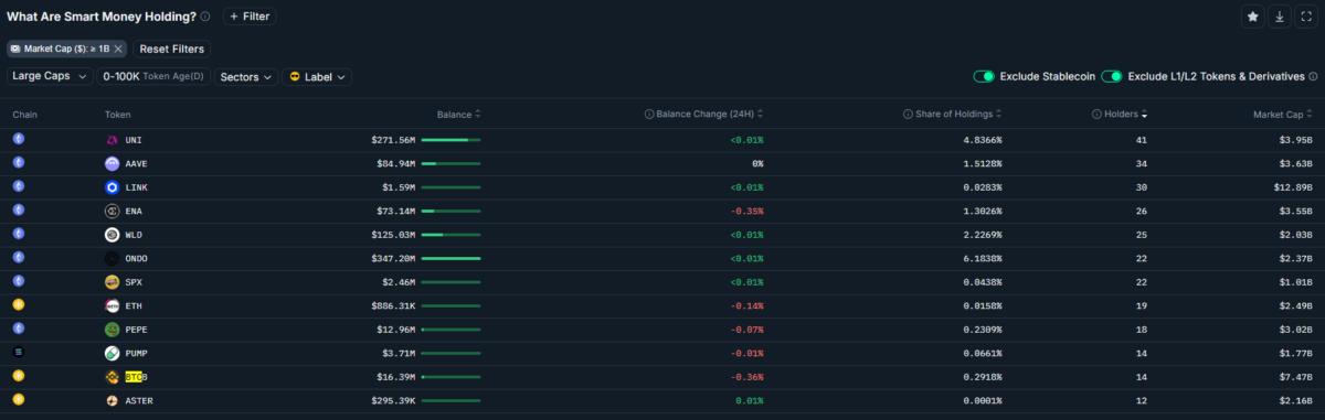 Binance-native Bitcoin (BTCB) was the 11th most-held token by smart money traders on Tuesday, following some more speculative memecoin holdings such as the Pump.fun (PUMP) token and the Pepe (PEPE) memecoin, data from Nansen shows.