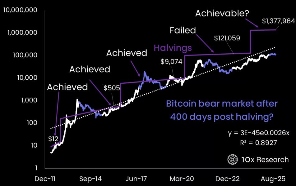 Despite numerous forecasting models, such as the popular stock-to-flow model, which has been widely cited as predicting a Bitcoin surge to $1 million, 10x Research’s methodology projected a cycle top of $125,000 for the end of the year.