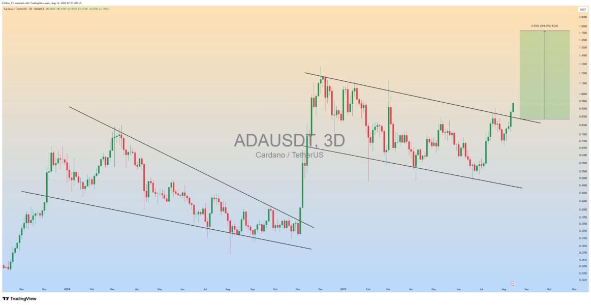 That breakout appears to be underway, with ADA facing resistance from $1, a level that has suppressed the price since December 2024.