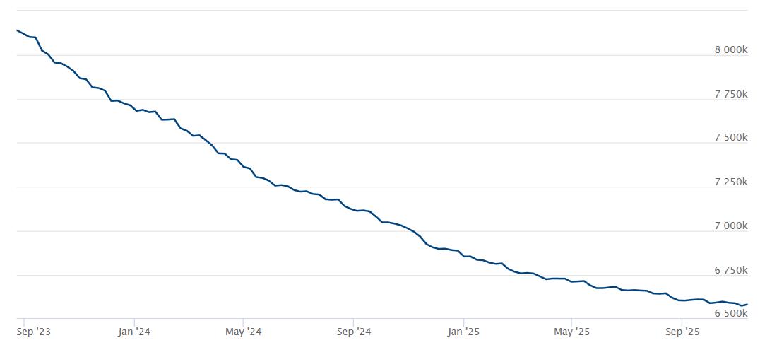 The Fed has signaled that it will no longer allow its assets under management to fall below the current $6.5 trillion, starting in December. This move could be offset by the launch of repurchase agreement (Repo) operations. In practice, the Fed’s balance sheet stays unchanged while cash is injected into financial markets, easing liquidity concerns by adding reserves to banks.