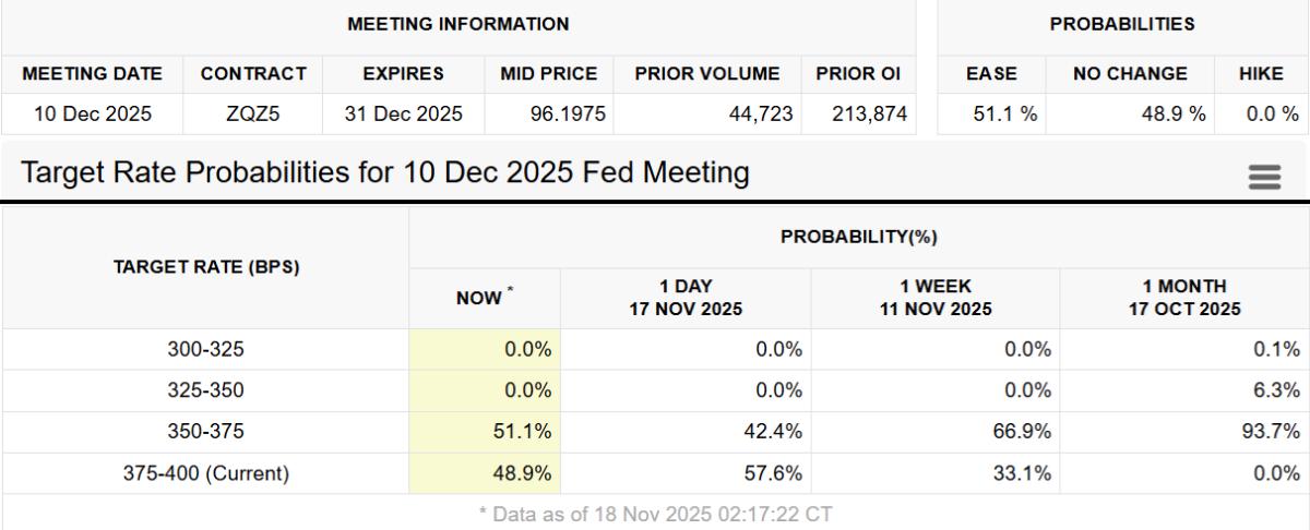 Bitcoin (BTC) and the broader crypto market could remain under pressure ahead of the upcoming US Federal Reserve interest rate decision on Dec. 10. Expectations for the direction of monetary policy remain highly split, with concerns over inflation clashing against signs of slowing economic activity.