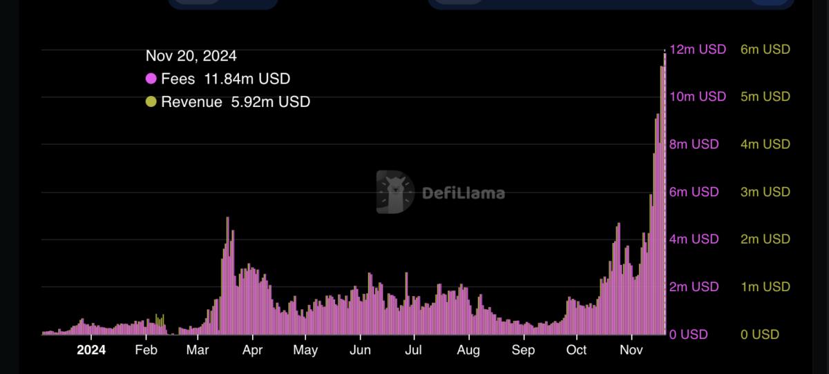 Solana daily revenue hit a record high of almost $6 million on Nov. 20, with network participants paying $7.63 million in transaction fees, according to data from DefiLlama.