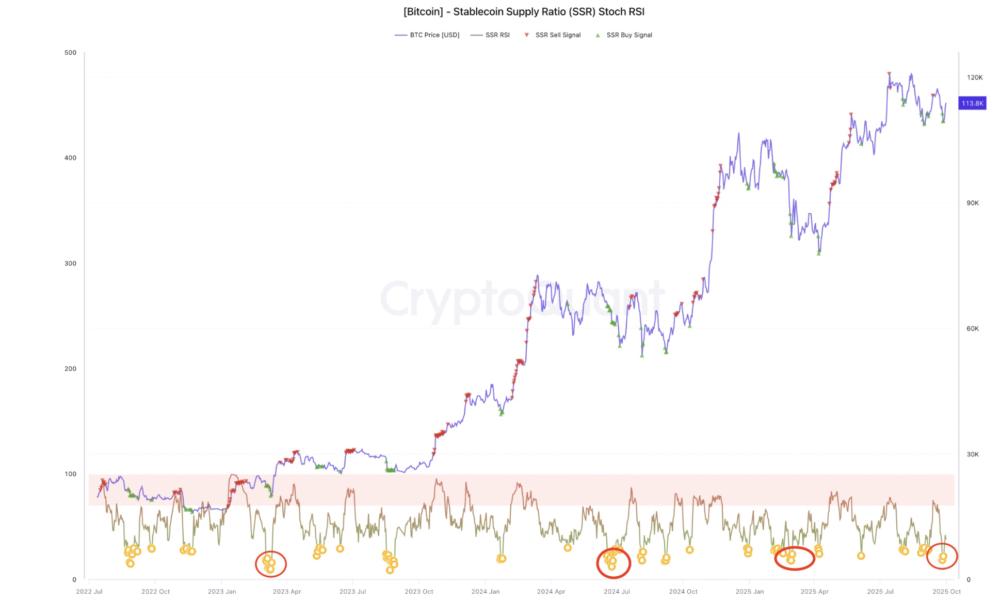 The Bitcoin “SSR RSI is at 21, and is ‘buy’ territory,” said onchain data provider CryptoQuant in part to an X thread on Tuesday.