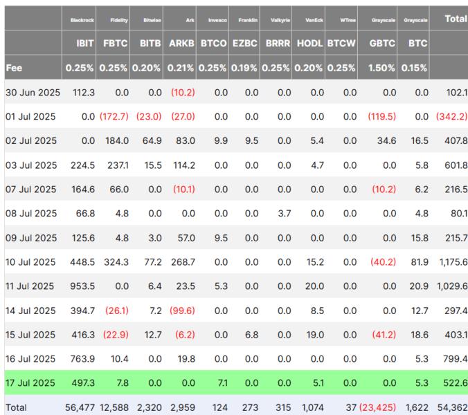 Meanwhile, the US spot Bitcoin exchange-traded funds logged the 11th consecutive day of net positive inflows, amassing over $522 million worth of investments on Thursday, Farside Investors data shows.