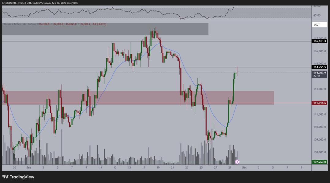 Bitcoin needs to break through $115,000 to confirm upside continuation.