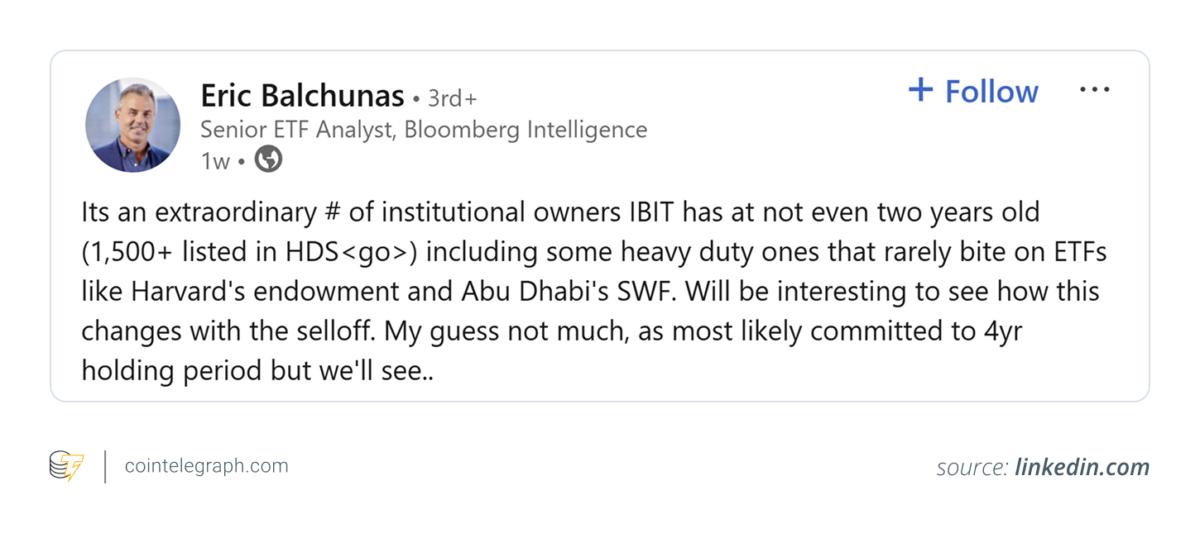 Some analysts see Texas’ move as further evidence that major institutions are becoming more comfortable with Bitcoin ETFs. Others warn that Bitcoin’s high volatility creates added risks for public money and that governments must be especially careful when investing taxpayer funds in such assets. Bloomberg ETF analyst Eric Balchunas also noted that IBIT is now reportedly held by an Abu Dhabi sovereign wealth fund.