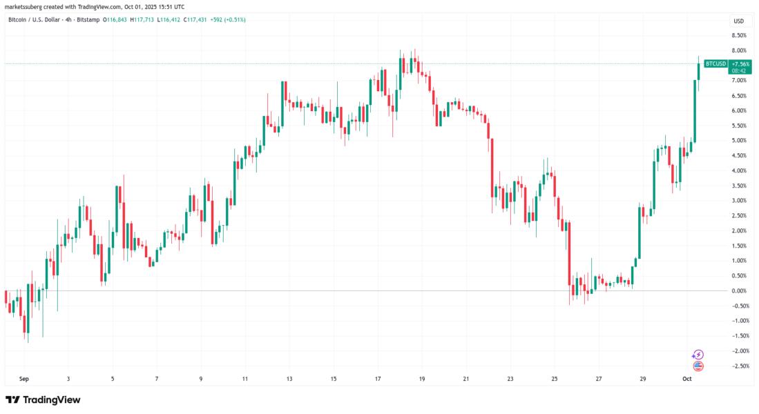 Bitcoin pushes for $118K as analysis calls US gov’t shutdown ‘non-event’