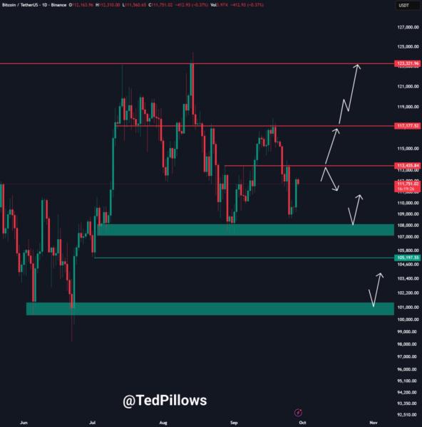 “Currently just retesting and resistance so unless we blow through on high volume, I expect some ping pong between here and 108k,” he summarized, demanding that bulls retake $118,000.