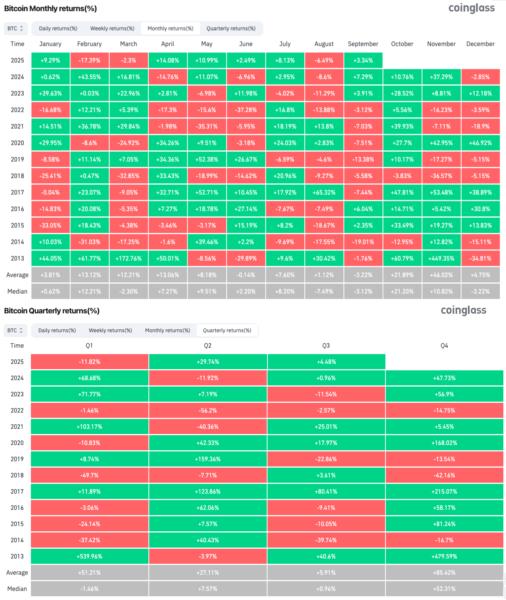 Those numbers would represent average performance for Bitcoin, with both September and Q3 returns historically highly variable.