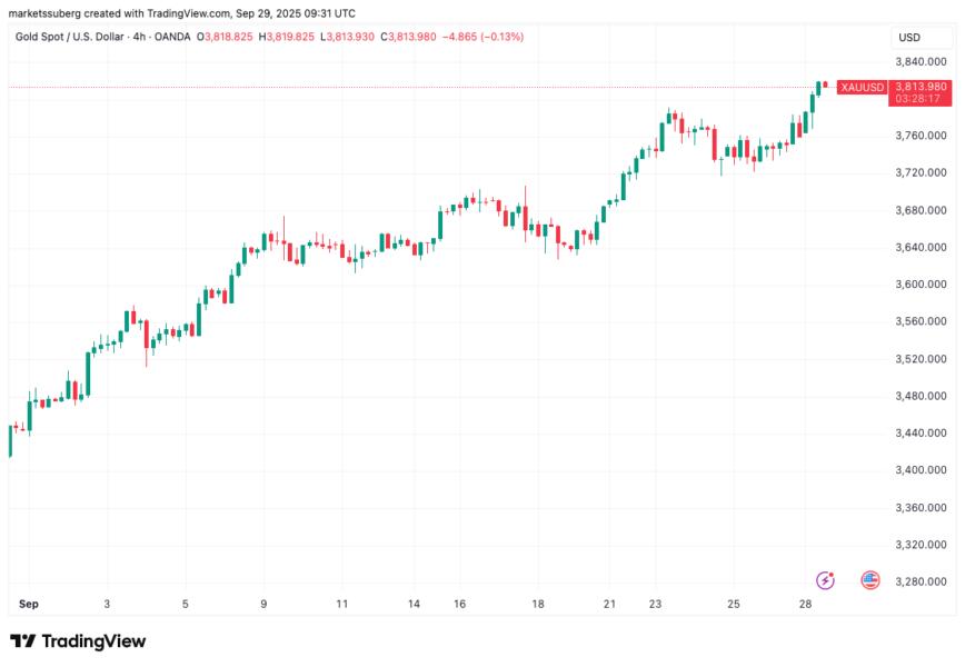 XAU/USD hit a fresh all-time high on Monday, passing $3,800 per ounce for the first time in history amid a comedown in US dollar strength.