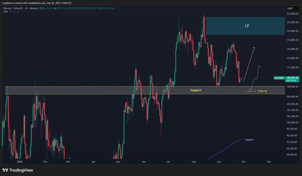 After threatening new September lows under $109,000, BTCUSD staged a last-minute rebound to reclaim $112,000 as support.