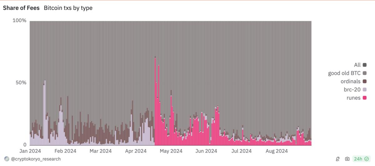 Although the mania surrounding Bitcoin Runes, ordinals, BRC-20 tokens, and inscriptions has sharply declined since their inception, these tokenized assets still provide a healthy source of revenue for Bitcoin miners.