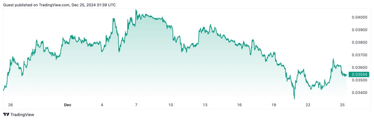 BTCUSD — the ETH/BTC ratio — is currently at 0.0356. MN Capital founder Michael van de Poppe said in a Dec. 24 X post that he “wouldn’t be surprised if $ETH / $BTC breaks through 0.04 in January.”