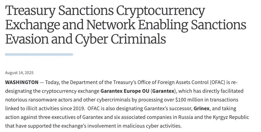 In mid-August, the US Treasury announced sanctions against Garantex and related entities, highlighting Moldovan oligarch Ilan Shor as the owner of A7A5’s issuer, the sanctioned Russian bank Promsvyazbank PSB.