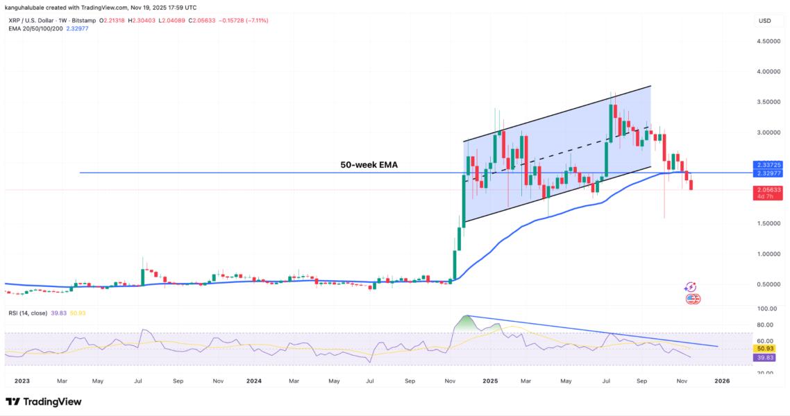 The bulls are fighting to keep XRP above the $2 support. A breakdown of this level will likely see XRP price fall toward the measured target of the triangle at $1.55 by the end of November, representing a 25% decline from current price levels.