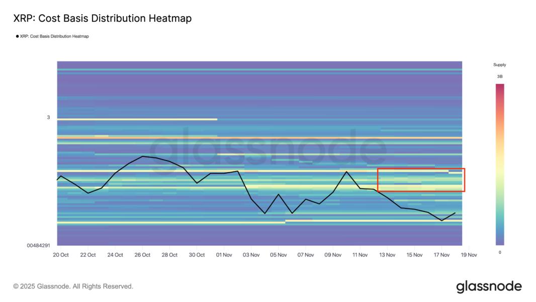 The Glassnode distribution heatmap shows that a large cluster of supply sits between $2.38 and $2.40 (embraced by the 100-day SMA and the triangle’s resistance line), where nearly 3.23 billion XRP were acquired. This marks an area of stiff resistance for XRP, adding to the tailwinds.