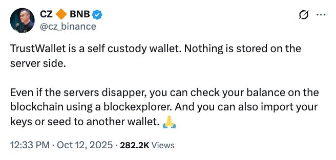 “We’re aware that some users are unable to see their balances in Trust Wallet due to a market data sync issue,” the platform wrote on X on Sunday, later confirming that the issue was resolved within about four hours.
