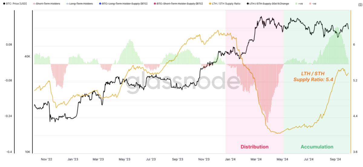 Analyzing the long/short-term holder supply ratio to assess the balance between these cohorts, Glassnode analysis revealed that this ratio has reached its highest level since June 2021.