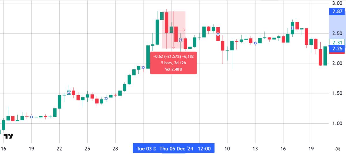 On Dec. 3, 2024, the funding rate remained below 0.05% per 8-hour period, equivalent to 0.45% per month. This suggests that leverage buyers had already positioned themselves aggressively before the correction.