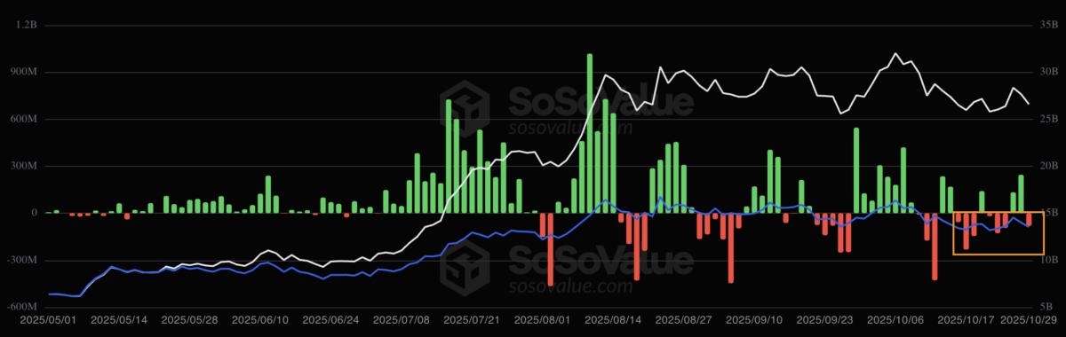 The bearish trend in Ether futures coincided with outflows from US-based Ethereum spot exchange-traded funds (ETFs) that have dominated since mid-October.