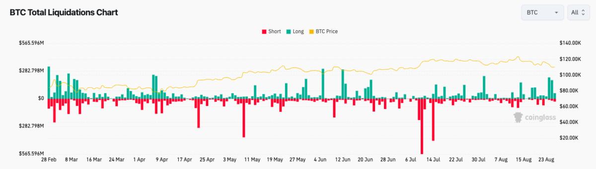 Data from CoinGlass puts total BTC long liquidations at nearly $500 million since Sunday.