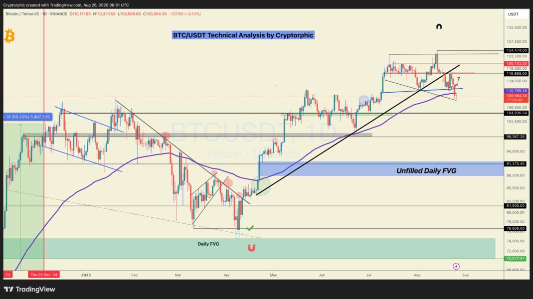 Bitcoin BTCUSD is teasing a breakdown below old all-time highs at $109,300; where will BTC price action head next?
