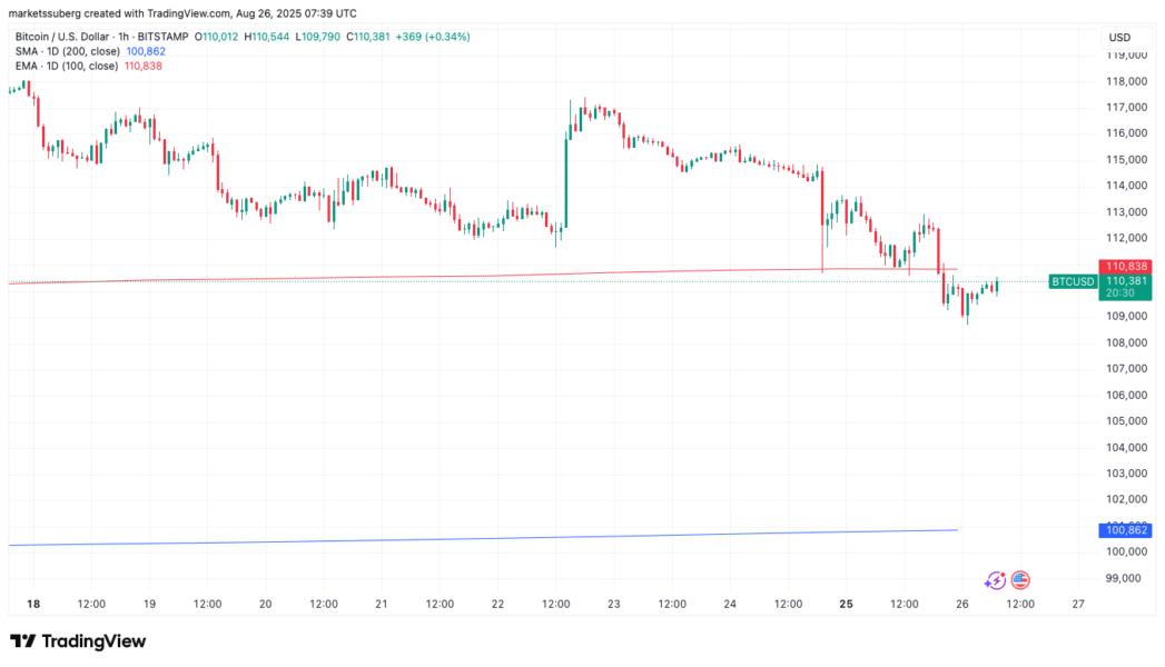 Data from Cointelegraph Markets Pro and TradingView shows the 100-day EMA at $110,820.