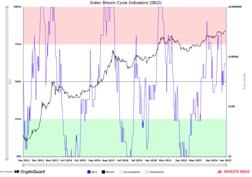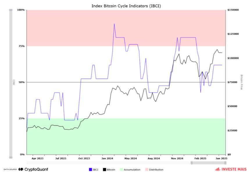 “After the strong upward movement between the end of 2023 and the first quarter of 2024 — when the IBCI reached the distribution region (above 75%) — the indicator went through a correction following the fall in the price of BTC,” the post continued.