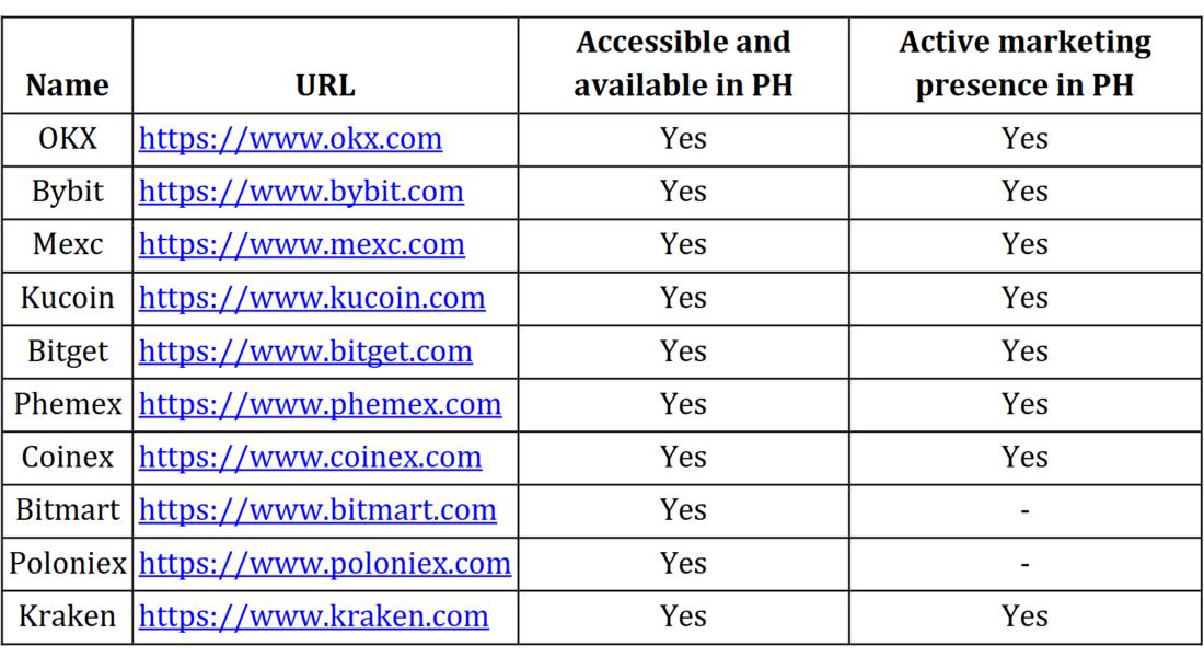 Cointelegraph reached out to the Philippines SEC, as well as major exchanges OKX, Bybit, KuCoin, Kraken and MEXC, for comment, but had not received a response by publication.