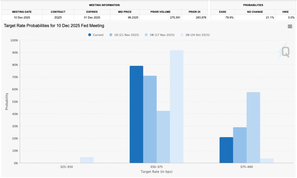 The latest data from CME Group’s FedWatch Tool puts the odds of a 0.25% cut at around 79% as of Monday, compared to just 42% a week ago.