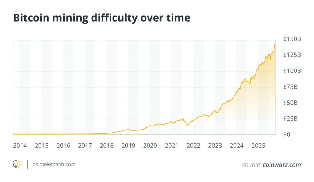 In 2025, both the hashrate and difficulty are at record highs. New, more efficient ASIC fleets keep coming online, pushing difficulty upward and forcing older rigs out of the market.