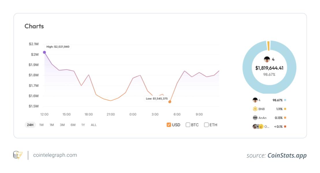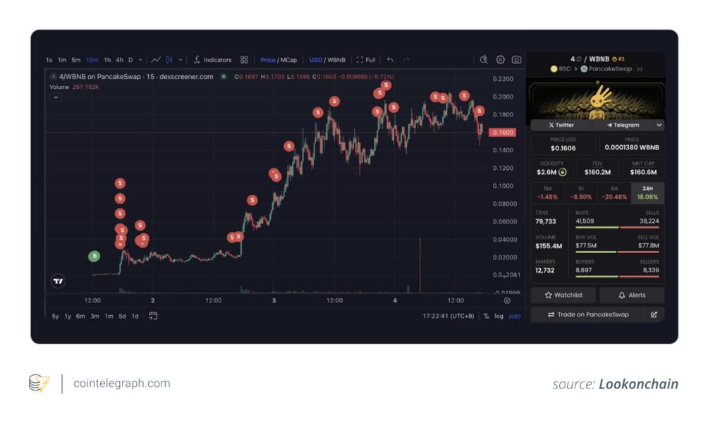 Key takeaways: CZ’s mention turned meme token “4” into a trade; one early buyer saw $3,000 grow to $2 million. The trigger was the hack of BNB Chain’s X account, which spawned “4.” The surge came from flow hitting thin liquidity, not fundamentals. Some wallets had already bought moments before CZ’s post. On Oct. 1, 2025, BNB Chain’s official X account was hijacked and used to push phishing links. Within hours, the drama spun into a joke token on BNB Chain called “4,” a playful nod to reports that the attacker made off with only about $4,000. Then, Changpeng “CZ” Zhao, Binance’s co-founder and former CEO, referenced the incident. That single mention turned a niche gag into a live market signal as attention flooded into a brand-new pool with barely any liquidity. In the rush that followed, one early buyer put about $3,000 worth of BNB Did you know? When CZ tweets “4,” he’s referencing point #4 from his 2023 “Do’s & Don’ts” list: Ignore FUD, fake news, attacks, etc. It became a community shorthand long before the 4 memecoin appeared.BNBUSD into “4” and watched it mark up to around $2 million on screen within hours.