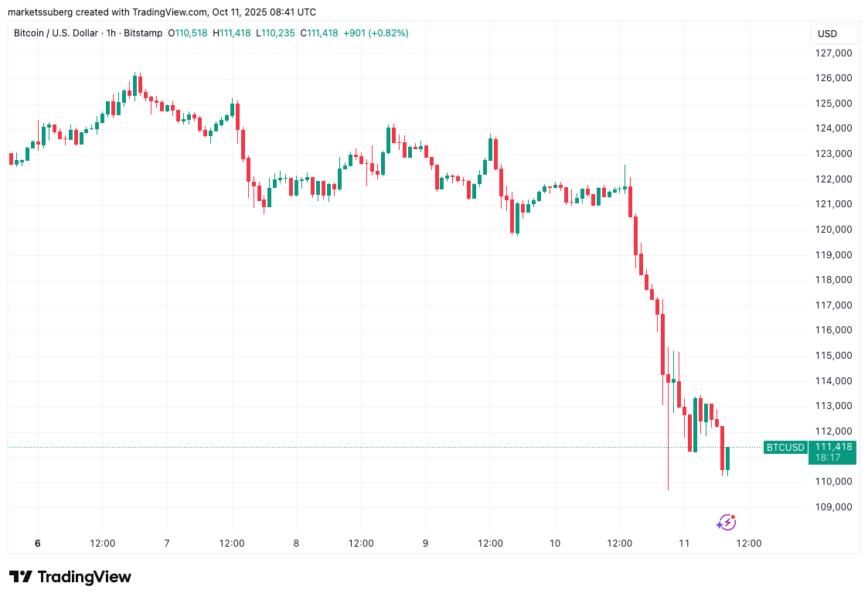 Bitcoin BTCUSD pressured $110,000 support on Saturday as the dust settled on a record $20 billion liquidation event.